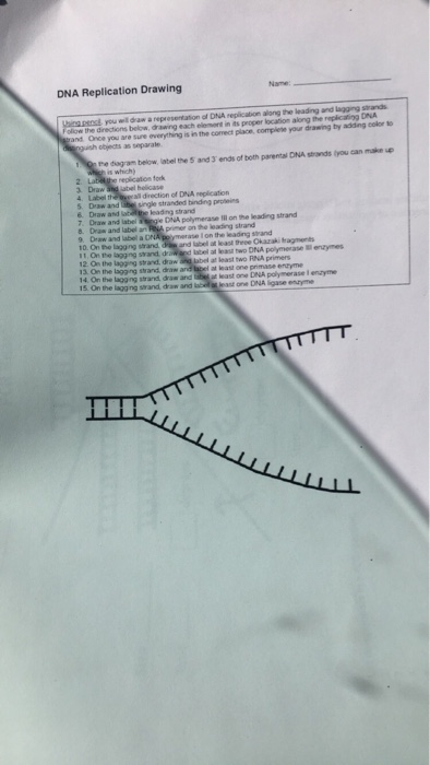 dna replication drawing draw representation wil along lagging leading biology strands below olow directions solved answer answers questions proper element